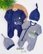 Mom-Dad 2 Overalls / 2 Hats Set-BLUE